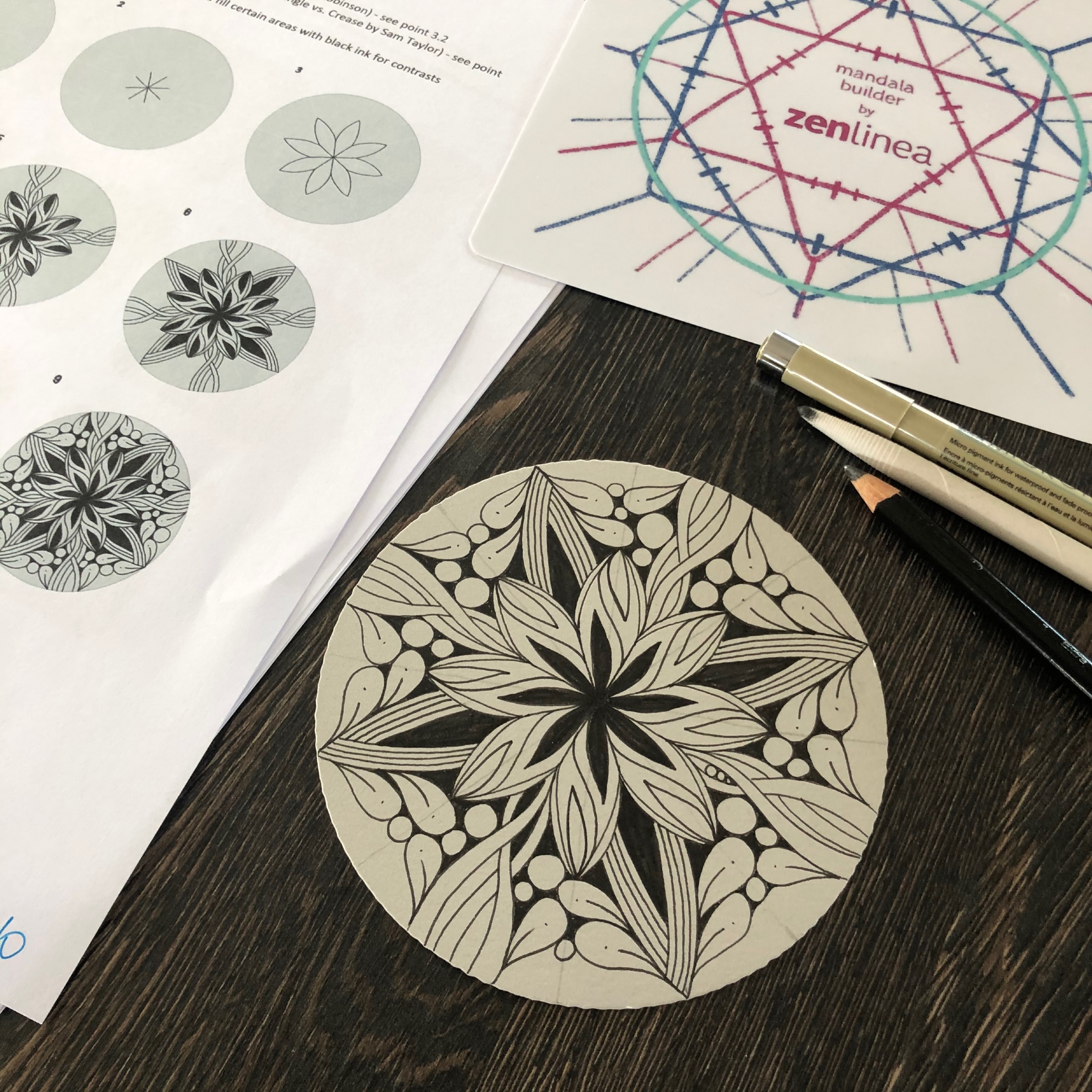 An intricate and seemingly complex design that you can add to your tangle repertoire. Learn how to draw, shade, and highlight this project, along with an additional mandala design, by following a video-on-demand class (total length above 2.5 hours) and a complimentary eBook.
