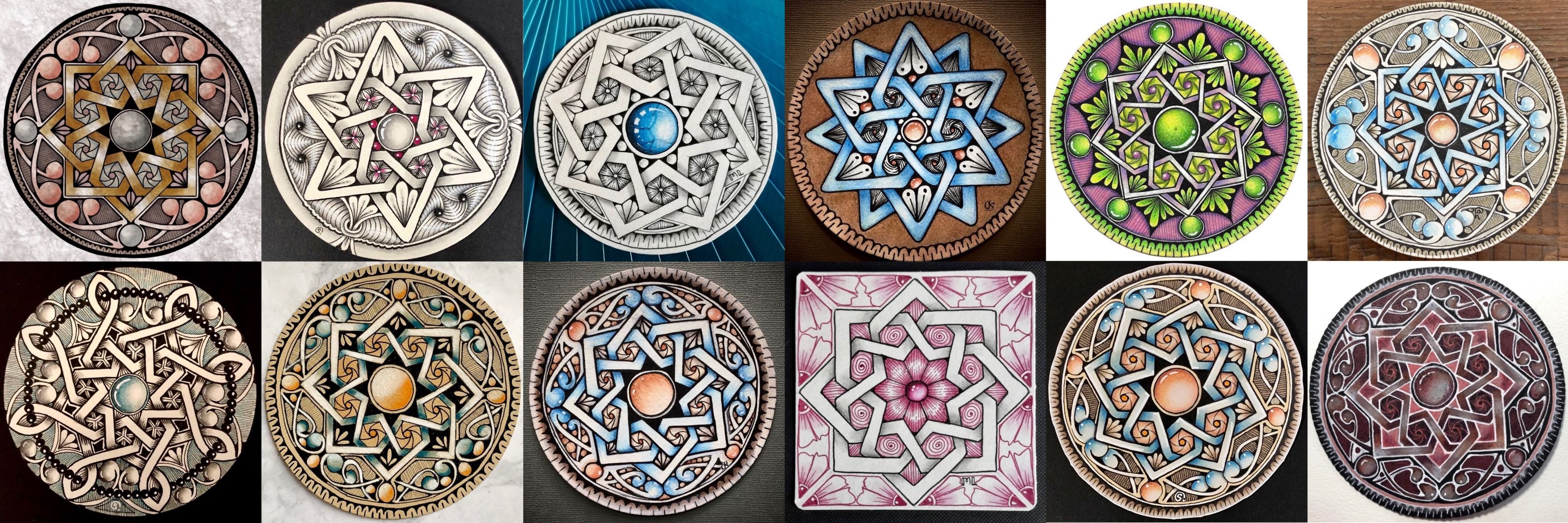 By purchasing this class, you will get unlimited access to video instructions (2h 7m total length) so you will be able to tangle whenever you want and watch, pause, and re-view all segments of the video class. Additionally, you will get a downloadable PDF document (29 pages) with step by step guideline to finishing the project, as well guidelines to draw a six-point Alhambra Star.