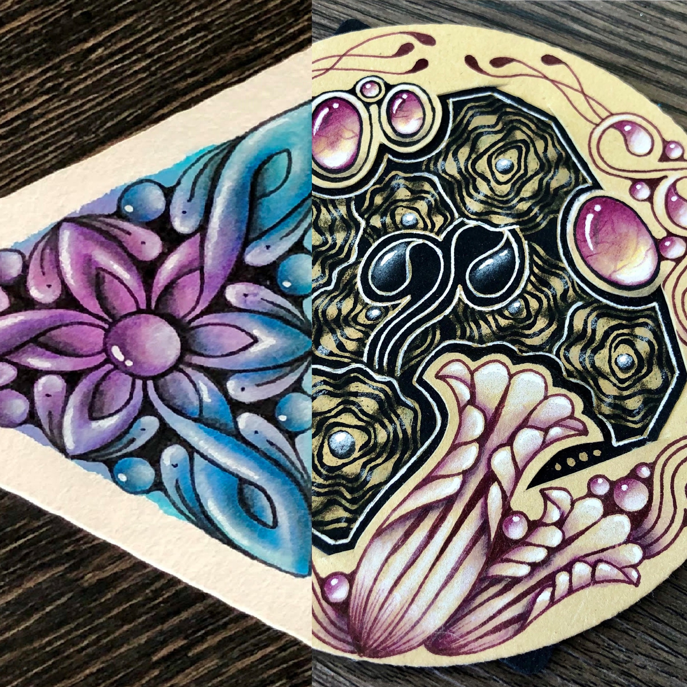 Two whimsical and fun video classes with eBooks. Draw many tangles, use different supplies, techniques, and design elements, now with a 15% discount.