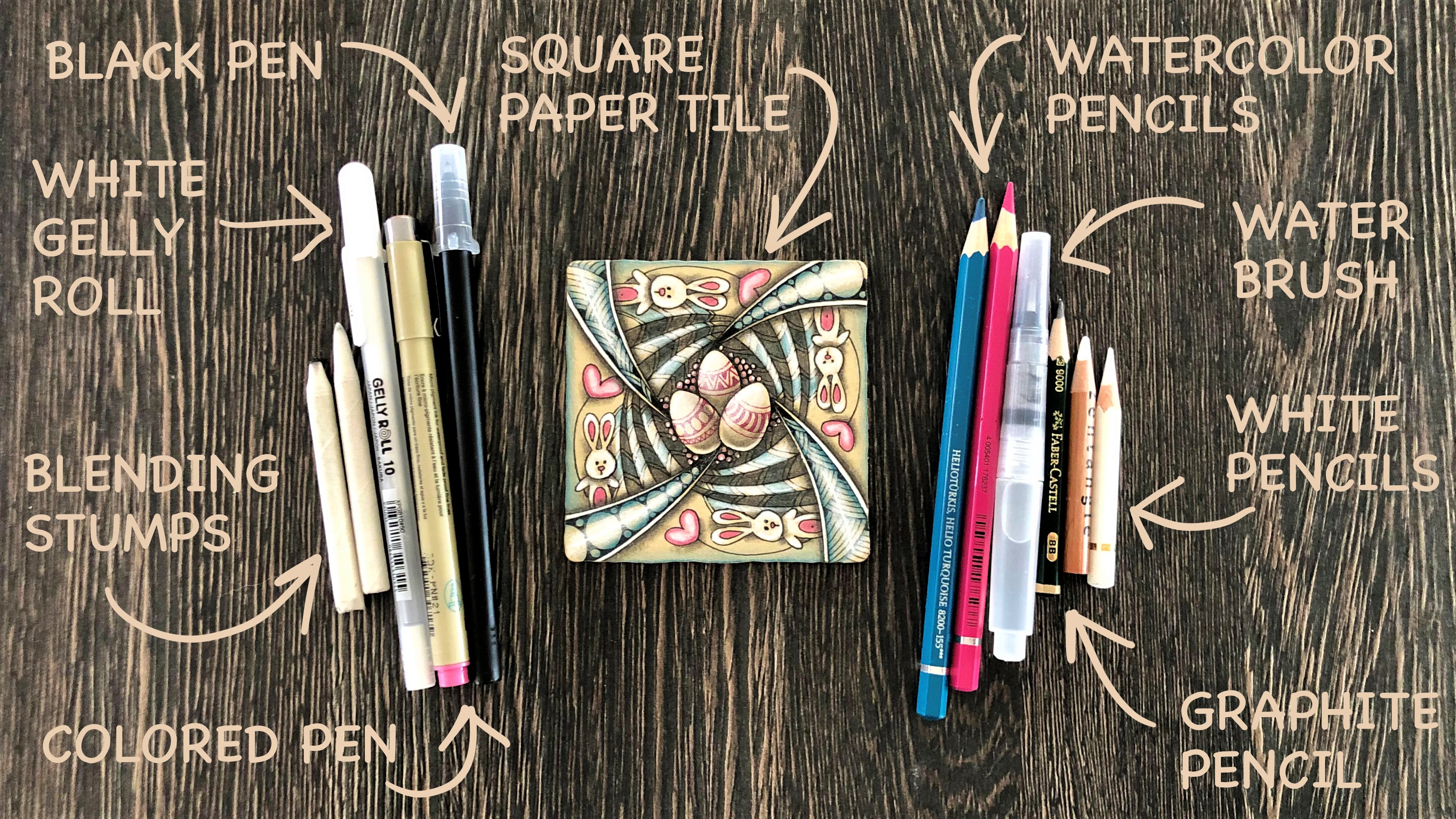 Together we will create a mandala-type design with some lovely bunnies and Easter eggs. Perfect for practicing some DIY card making skills. The carefully chosen tangles will allow us to explore some advanced shading approaches as we will use watercolor pencils and some additional supplies. Please note that there is no PDF booklet included with this video class.