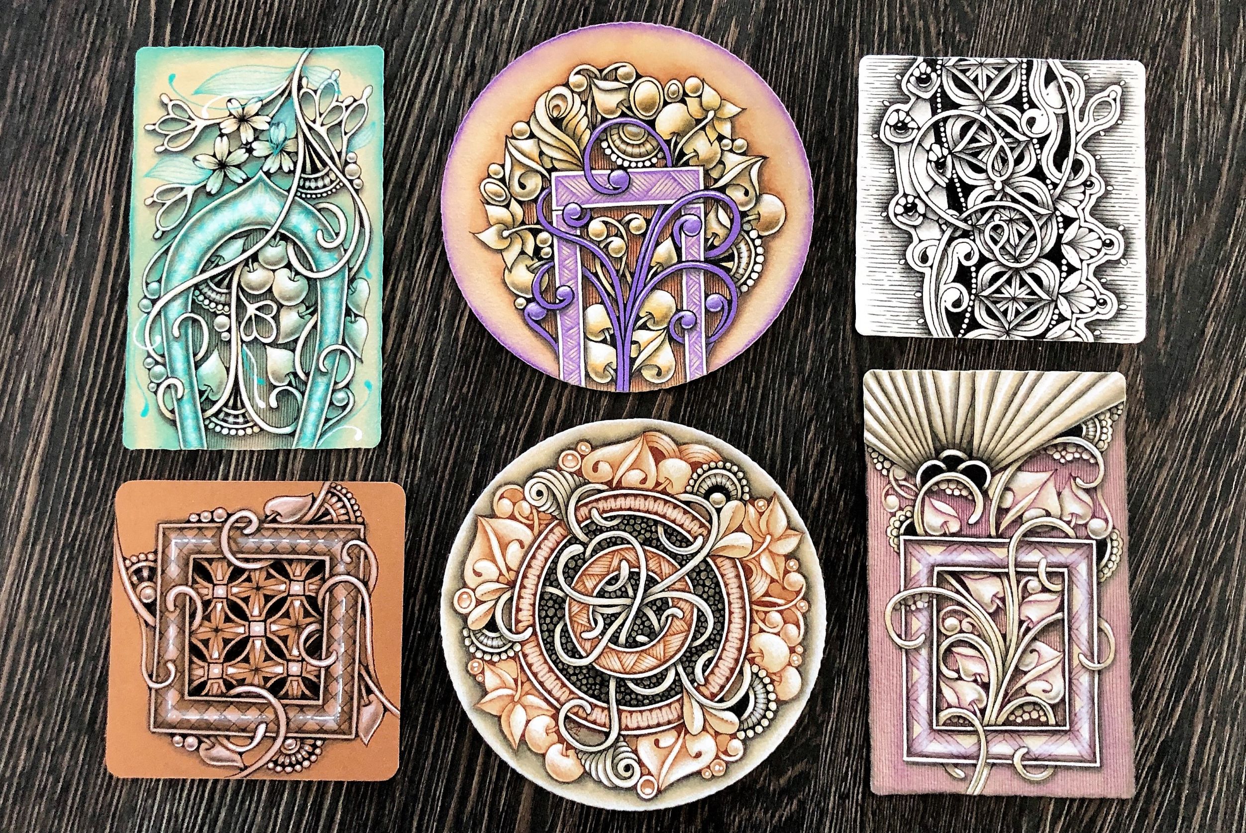 You will also learn my approach to using color to enhance the dimensionality and contrast, along with using the usual shading and highlighting tools to make the artwork come alive. From choosing tangles and positioning them, all the way to using color, it's all covered in video lessons and systematized in the eBook.
